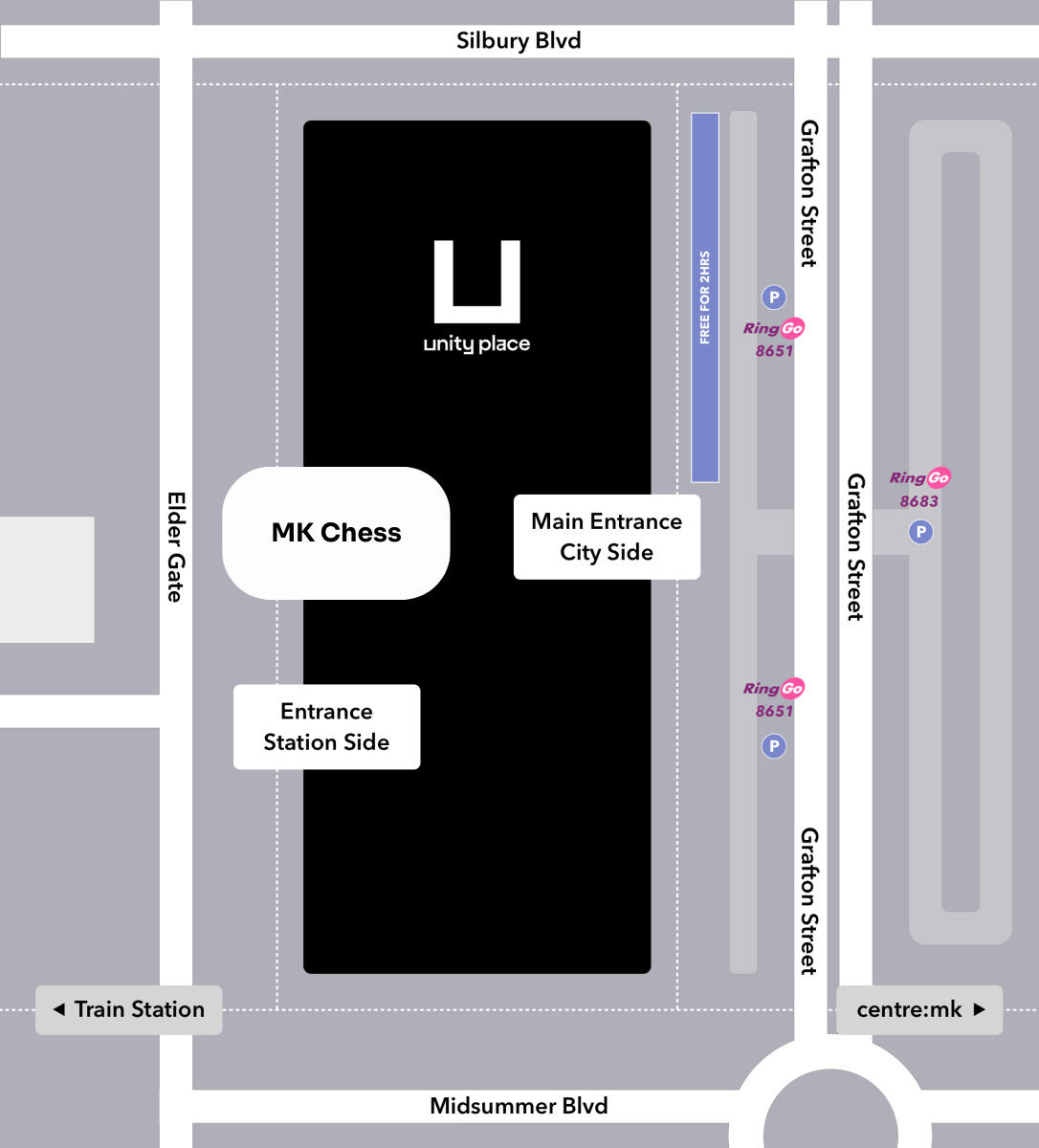 Community Hall, accessible from outside of Unity Place facing the MK Train station.Unity Place staff can direct you